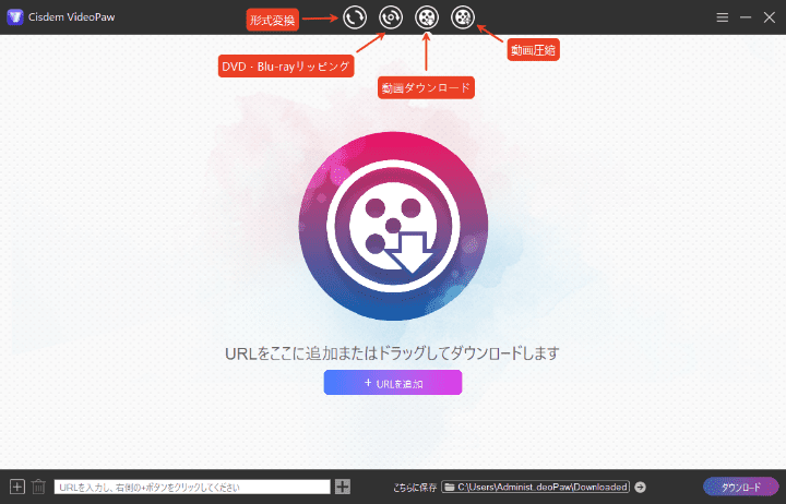 複数の動画を一括ダウンロード可能 動画をダウンロードできるだけではなく、形式変換、編集、圧縮、DVDリッピングなど、複数の機能を備えている |