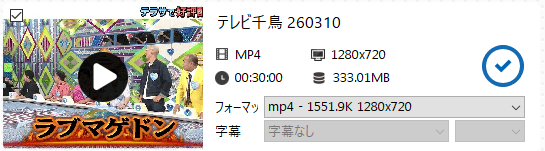 ダウンロード完了後、チェックボタンをクリックすることで動画の保存フォルダを開けます。
