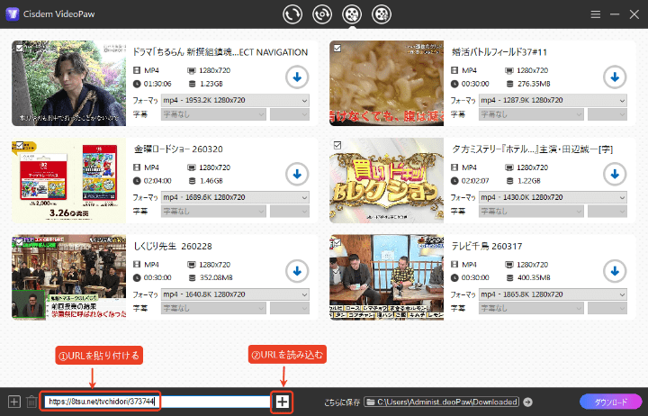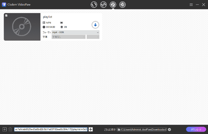 このリンクをCisdem VideoPawに貼り付け、読み込みすれば、うまく成功します。