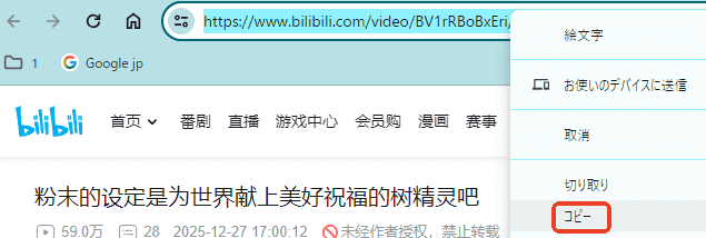 - bilibiliにアクセスし、好きな動画のURLをコピーします。