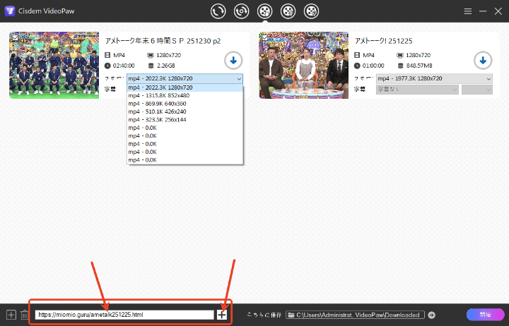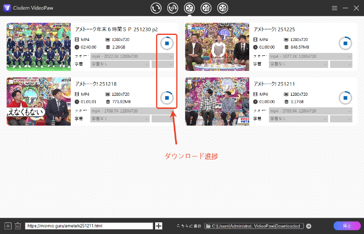 Cisdem VideoPawでMioMio動画を一括ダウンロードする操作手順: