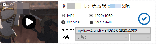 - ダウンロードできる動画が表示されます。上のサイズの小さいのは広告ですので、ダウンロードしないでください。上から3番目の解像度の書いている動画がTVer動画になります。クリックします。