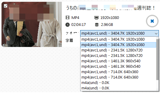 - 画質を選択して、その右のダウンロードボタンをクリックします。