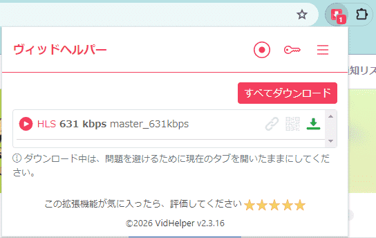 - 動画を再生しないと拡張機能が動画を検出できませんので、まずは動画を再生する必要があります。