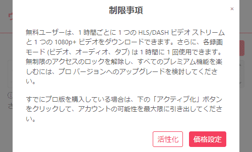 - 注意:長く、サイズの大きい録画の場合、ダウンロードボタンをクリックしても反応しない場合があります。また、無料版の場合、1時間に1つの録画しかダウンロードできませんのでと注意ください。