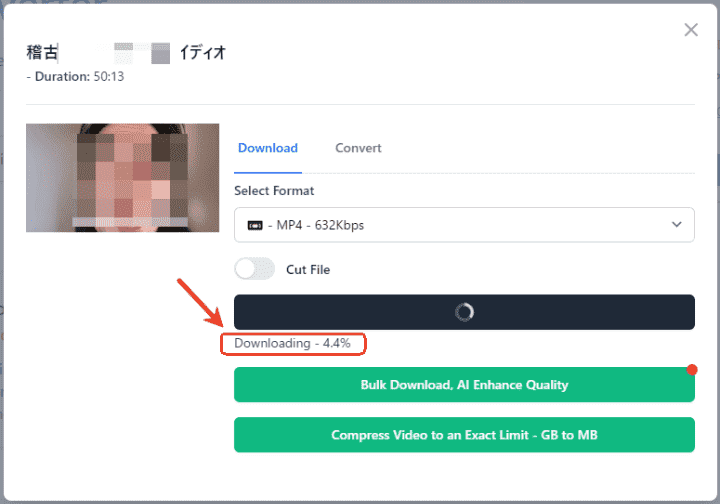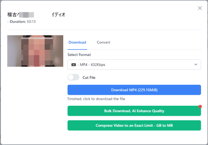 - 準備完了後、「Download MP4」をクリックすればツイキャスのアーカイブをダウンロードできます。