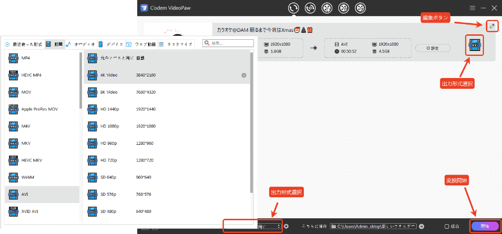 ダウンロードしたTwitch動画は普通MP4形式で保存され、MacとWindowsの標準アプリで簡単に再生できます。他の形式に変換したい場合は、Cisdemの形式変換機能を使いましょう。