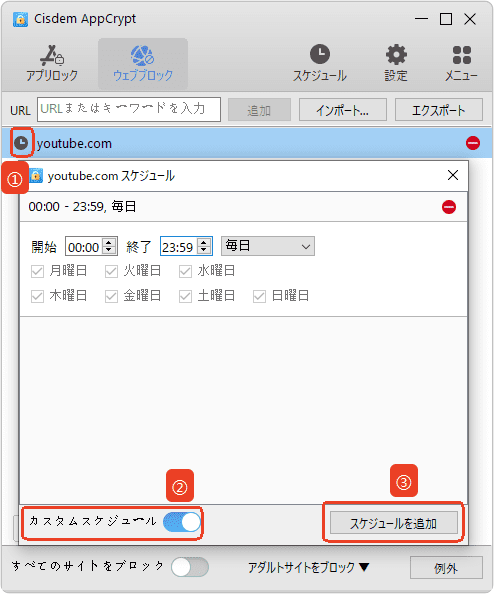 Cisdem AppCryptでYouTubeへのアクセスを禁止する操作手順