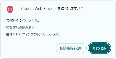 「インストール」をクリックすると、Chromeが起動し、Cisdem Web Blockerのインストールページが開きます。「Chromeに追加」>「拡張機能を追加」をクリックしてインストールします。