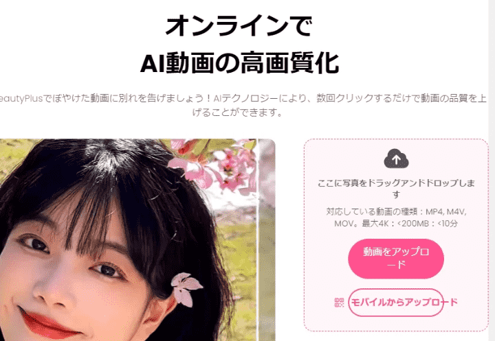 1.https://www.beautyplus.com/ja/ai-video-enhancerにアクセスします。