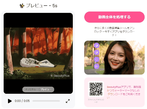 コスト面で考えると、高画質化したい動画は1本か2本くらいしかなく、長さも短い場合、オンラインサイトBeautyPlusがおすすめです。