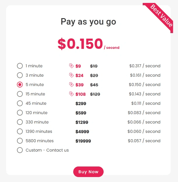 5.フル動画を高画質化するには登録+料金が必要です。1分間の動画を高画質化するには9ドル(約1402円)が必要です。