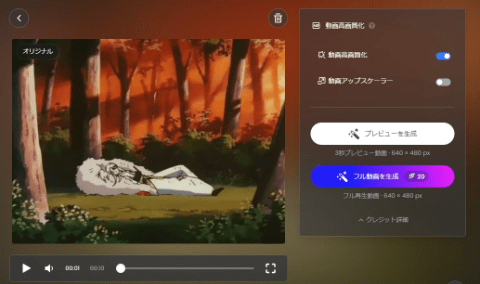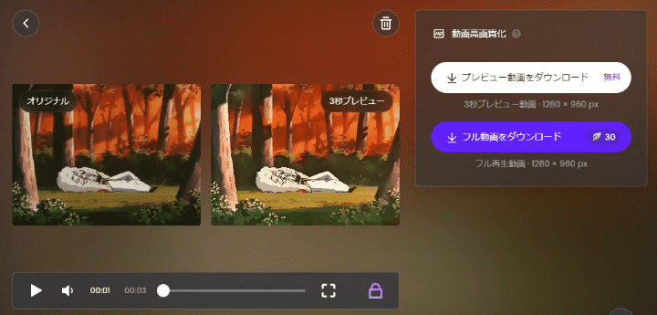 4.そして高画質化の効果を確認できます。ですが、5秒しかプレビューできません。