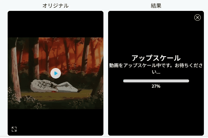 3.動画アップロード及びアップスケールが完了まで待ちます。