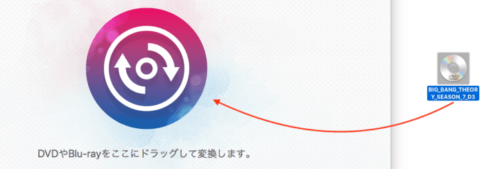 DVDドライブをMacと接続すると、デスクトップとFinderのサイドバーにDVDのアイコンが表示されます。ドラッグ&ドロップでDVDをソフトに追加します。