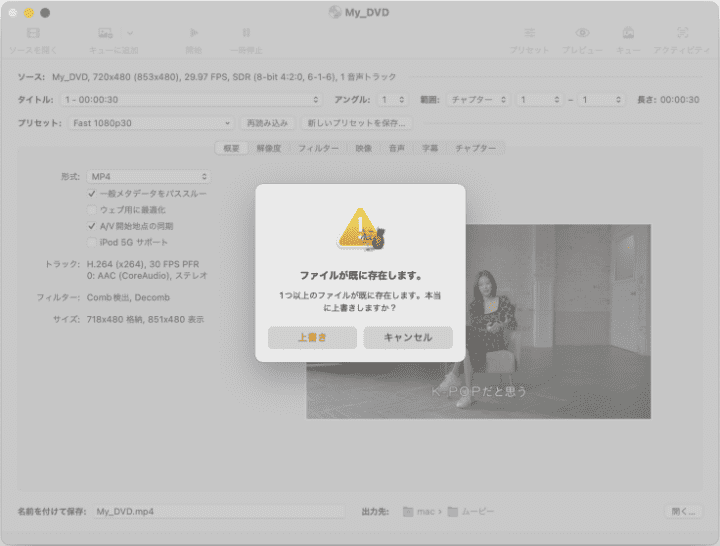 映画DVDをリッピングする時、Handbrakeは動画をAVCに再エンコードし、もっとサイズの小さいファイルで出力しますので、品質もそれなりに劣化します。よって、無劣化でDVDをリッピングしたい場合、Handbrakeがおすすめしません。