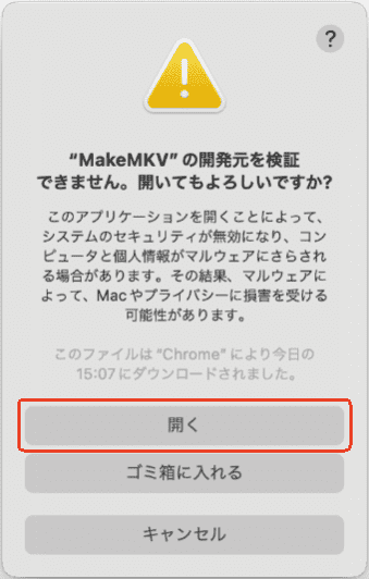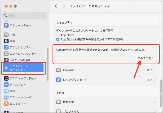 3. 下にスクロールして、「”MakeMKV”は開発元を確認できないため、使用がブロックされました」の警告を見つけ、「このまま開く」をクリックします。