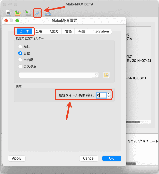 6. ですが、デフォルトでは120秒以上のタイトルしか分析してくれません。120秒以内のタイトルがある場合、「設定」画面に入り、「ビデオ」タブの「最短タイトル長さ」で調整できます。