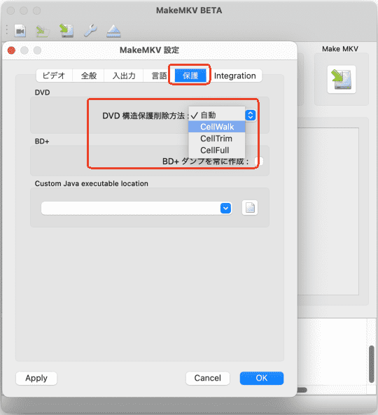 また、「保護」タブでDVDコピーガードの削除方法を選択できます。