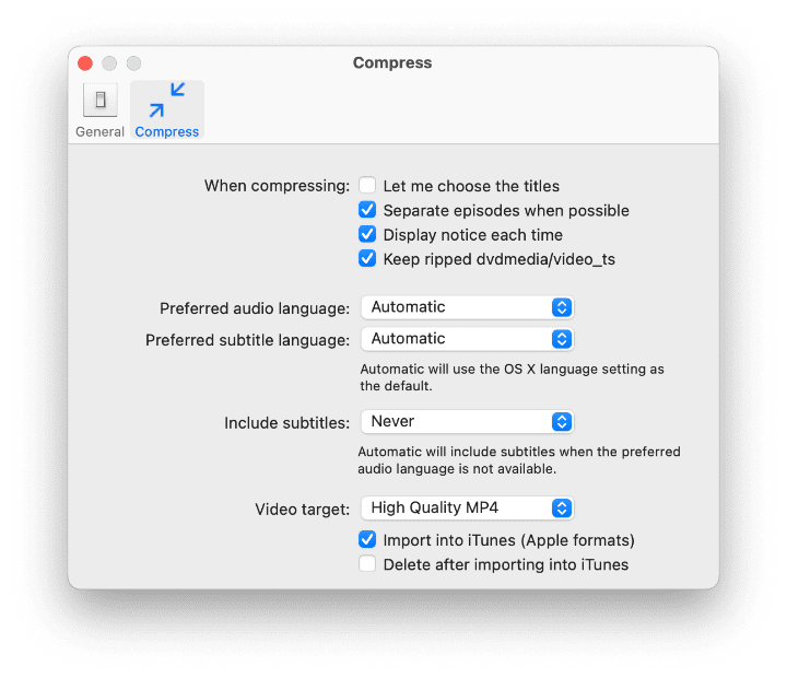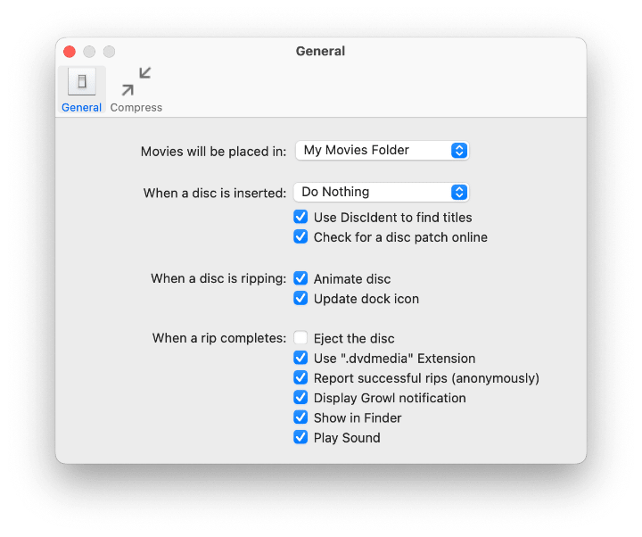 8. DVDを一般的な動画形式にリッピングする場合、「Compress」をクリックしましょう。