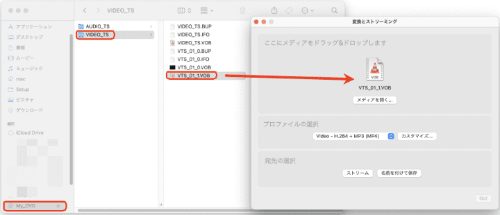7. ですがこの場合、出力されたファイルの形式は「DVD Media Document」になっていて、QuickTime Playerなどで再生できません。VLCをインストールしている方は、そのファイルをDVDと同じように再生できます。