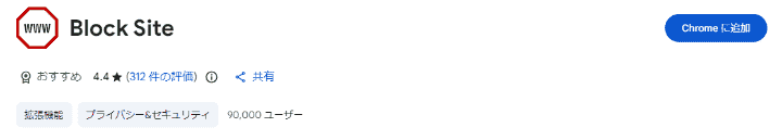 1. Chromeウェブストアでrynu.smithが提供した拡張機能「Block Site」を追加します。