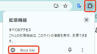 3.URL欄の右にある拡張機能アイコンをクリックして、先ほど追加した拡張機能「Block Site」をクリックします。