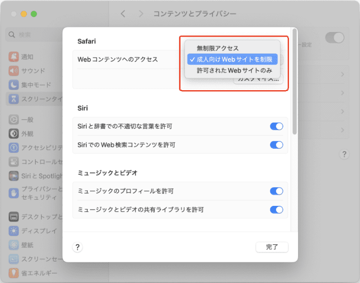 Macには、簡単に自分のパソコンの使用時間を制限し、サイトをブロックする標準機能--スクリーンタイムが搭載されています。便利、無料、かつインストール不要で利用できます。