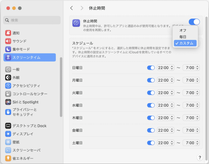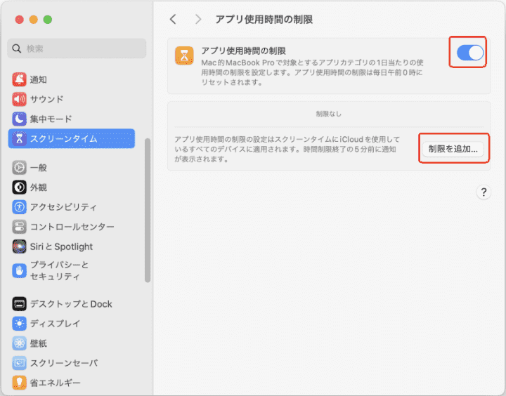 Mac標準機能スクリーンタイムで自分のパソコンの使用時間を制限する