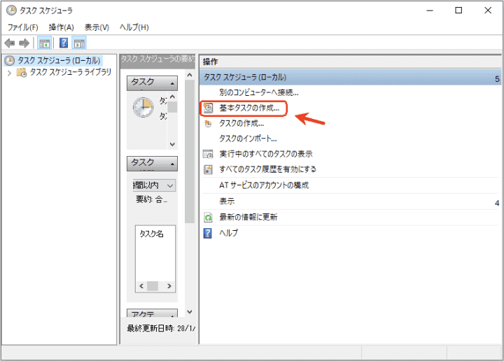 - 一番右のカラムで、「基本タスクの作成」をクリックします。