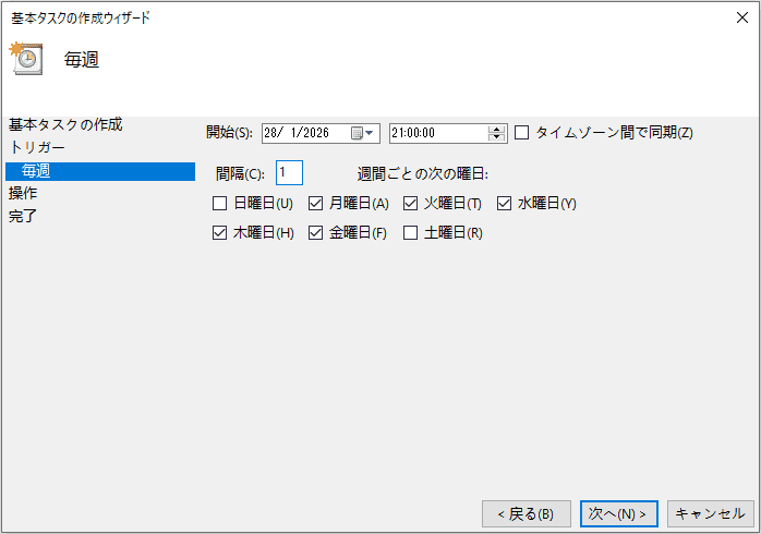 - また、「スケジュール」項目で週間スケジュールを詳しく設定できます。