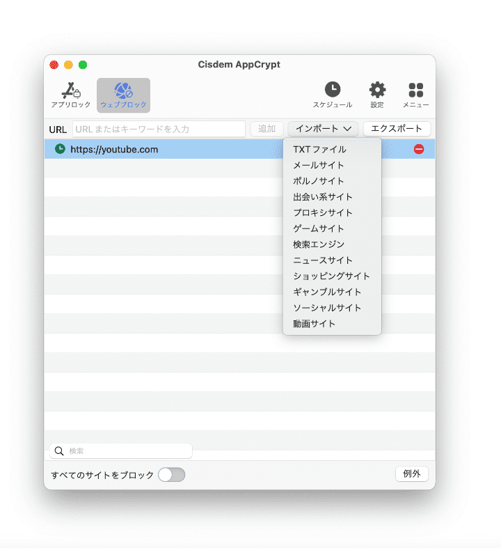 - URLとキーワードでウェブサイトをブロックすることもできる