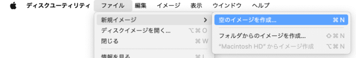 - メニューバーから「ファイル」→「新規イメージ」→「空のイメージを作成」を選択します。