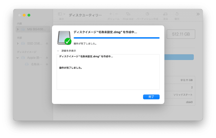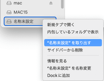 - Finderのサイドバーでそのディスクイメージを右クリックして、「取り出す」を選択すれば、このディスクイメージは見えない状態になります。
