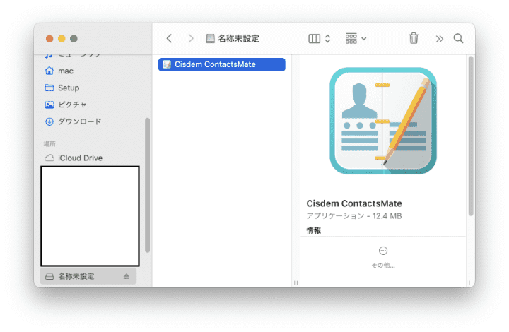 - Finderのサイドバーに移動して、「デバイス」項目の下でマウントされたファイルを見つけます。クリックして中に入り、ロックしたいMacのサードパーティ製ソフトをこちらに移動します。