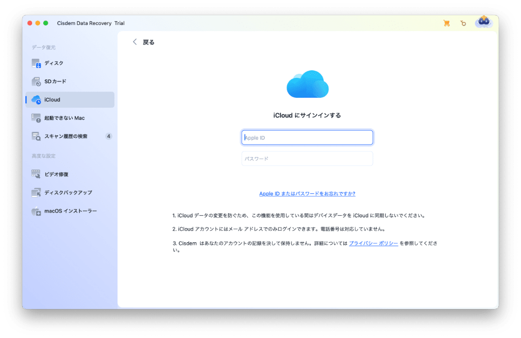 1. MacでCisdem Data Recoveryをインストールし、起動します。