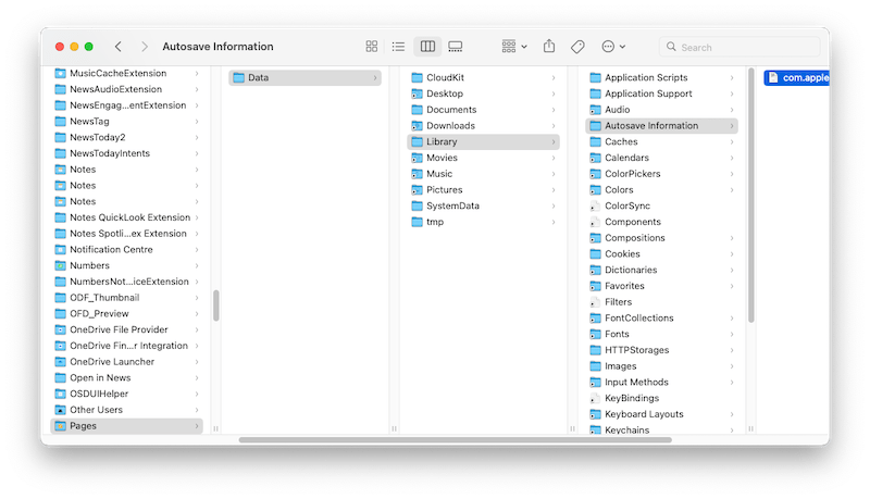 Pagesは未保存のファイルを自動的に開いてくれない場合、いったん手動でその自動保存フォルダを開き、確認しましょう。