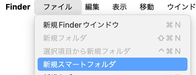 - Finderで新規スマートフォルダを作成します。