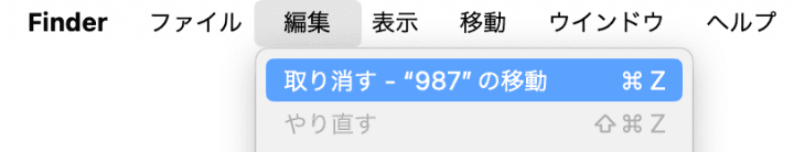 Pagesファイルを削除した後、Macで他の操作を行っていない場合、簡単にFinderのメニューから削除したファイルを元に戻せます。