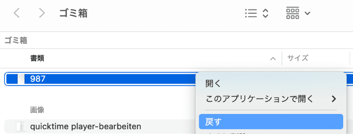- そのファイルを右クリックして、「戻す」をクリックします。