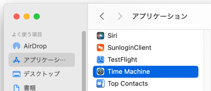 - アプリケーションフォルダでタイムマシンを起動します。