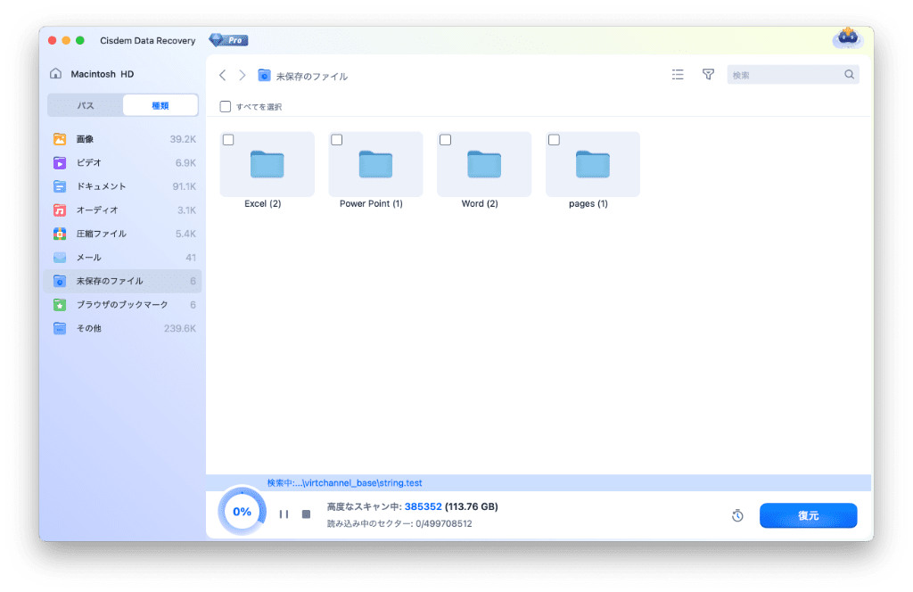 Macユーザには、Cisdem Data Recoveryがもっともおすすめのデータ復旧ソフトです。豊富な機能を搭載し、Pagesだけではなく、Keynote、Numbers、PowerPoint、Word、Excelを含む1000以上の種類のファイルに対応していて、最新のmacOS TahoeとM5チップ搭載のMacと互換性も抜群です。