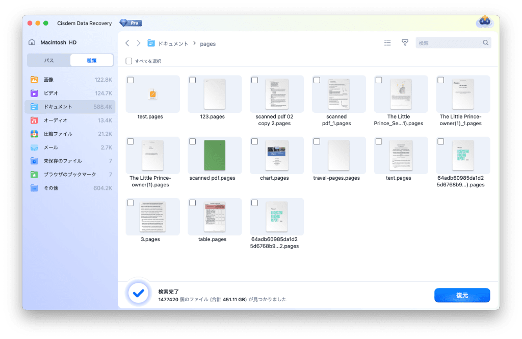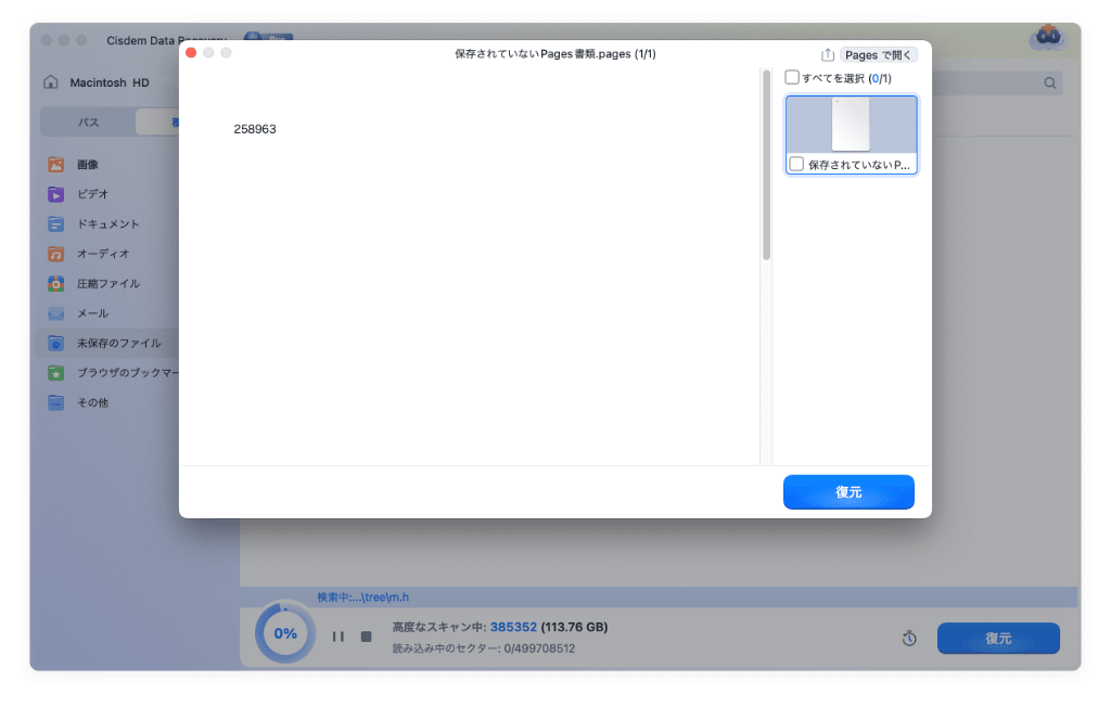 Cisdem Data Recoveryで完全に削除したPagesファイルを復元する操作手順: