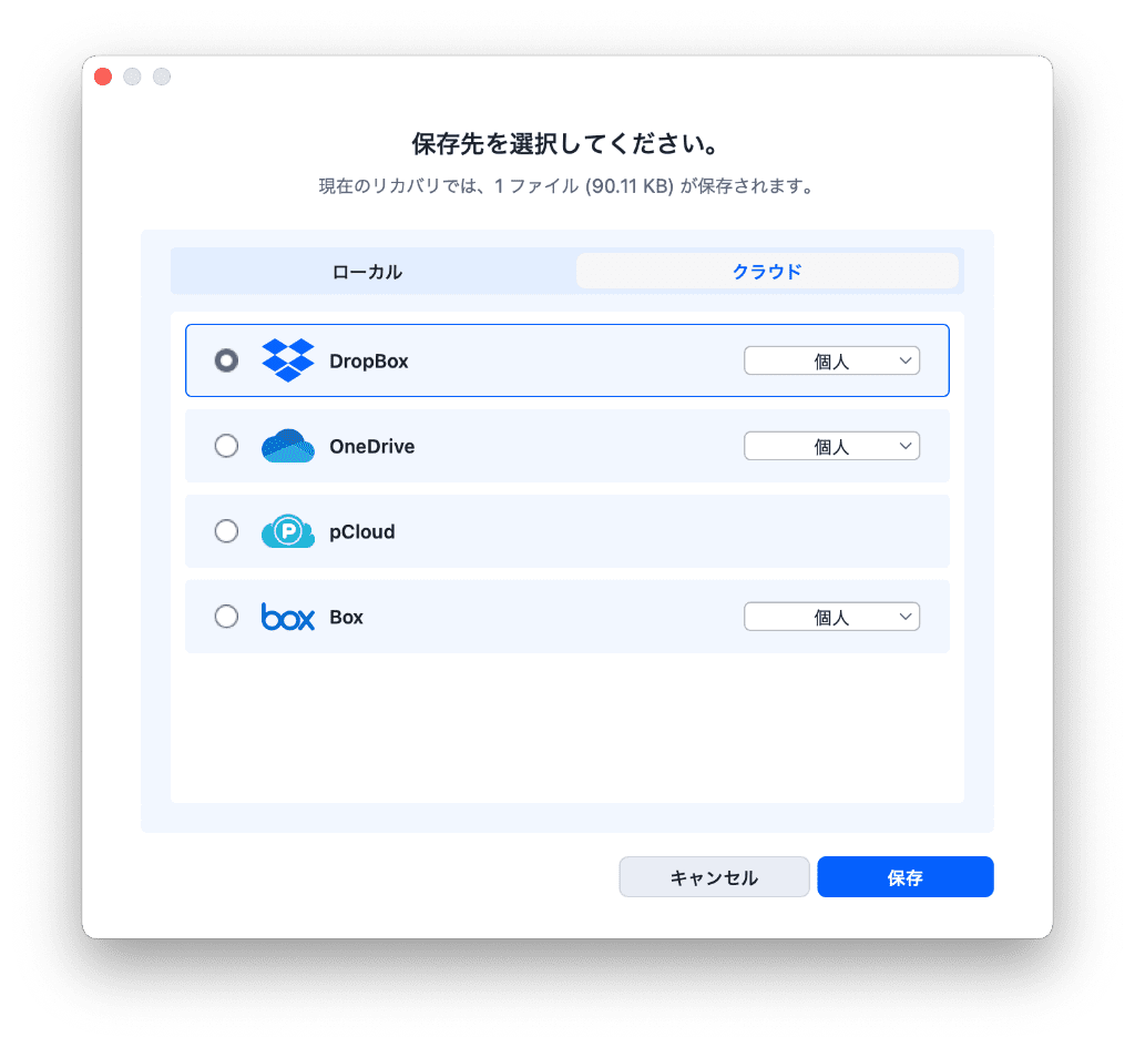 - ファイルをローカルドライブやクラウドに復元できる