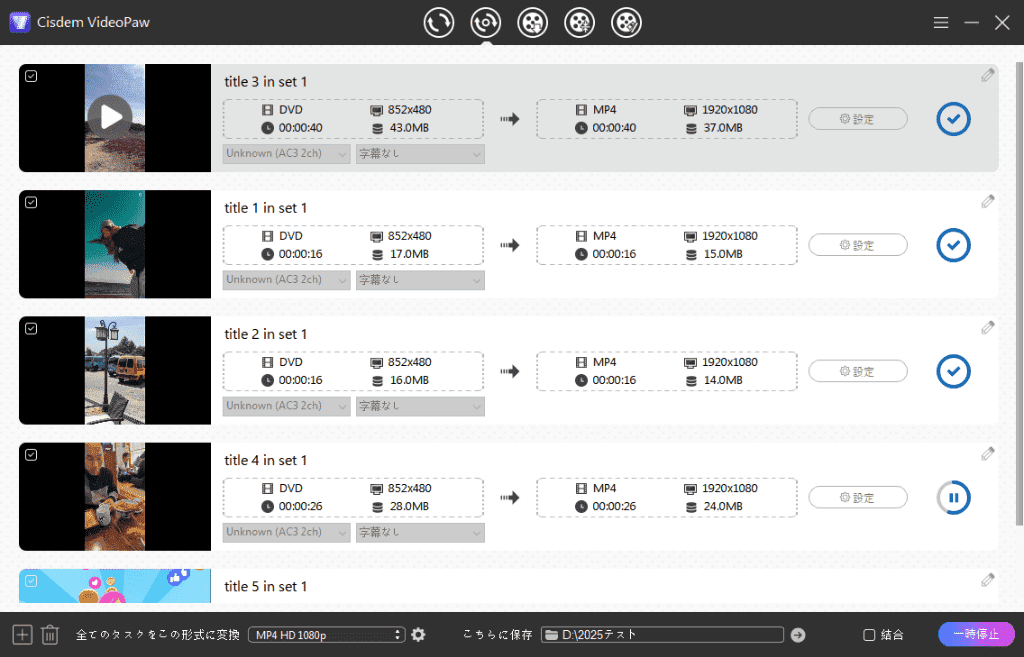 ISOからMP4に変換する方法は以上でした。様々な方法があり、無料で変換できるソフトやサイトもありますが、一番のおすすめはやはりCisdem VideoPawです。ISOをMP4などの形式に変換できるだけでなく、簡単に動画編集/結合などもでき、動画ダウンロードとDVDリッピング、そして圧縮機能もありますので、重宝してます。