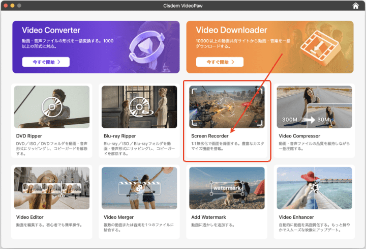 それでは、Cisdem VideoPawでMacの画面を録画する方法を詳しく紹介します。