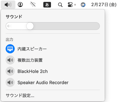 ※ステップ 1でサウンドの出力方法を「BlackHole 2ch」に設定した場合、録画完了後に出力方法を「内蔵スピーカー」に戻すようご注意ください。