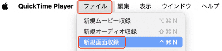 - メニューバーで「ファイル」> 「新規画面収録」をクリックして、録画ツールを呼び出します。