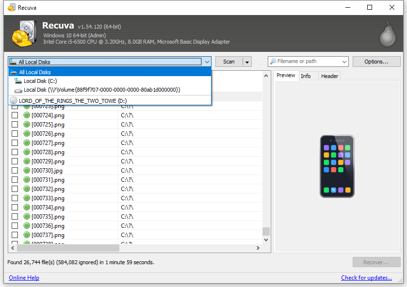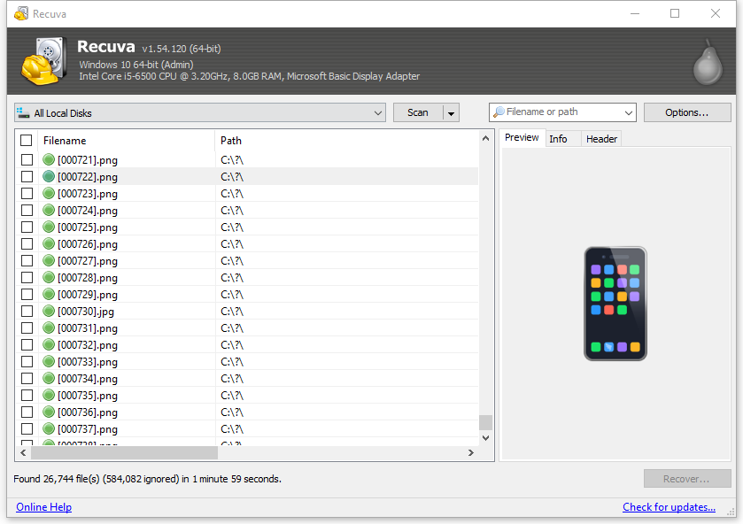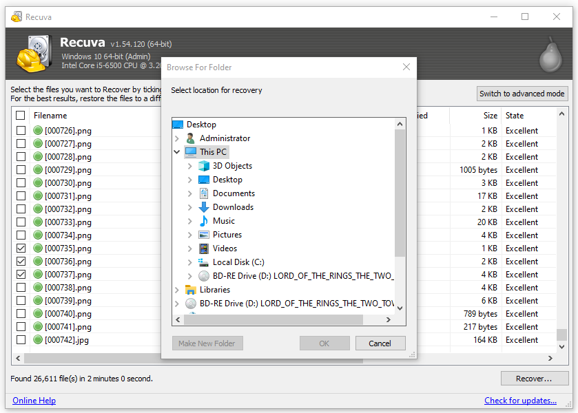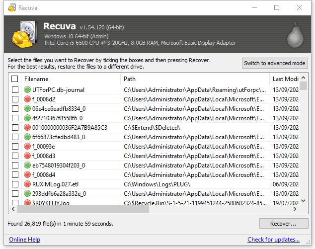 Recuvaのレビュー(V1.54.120)