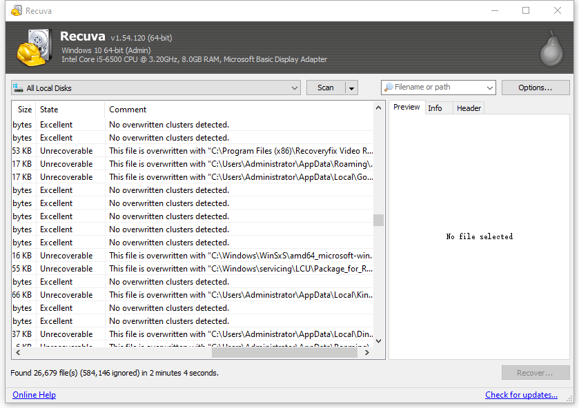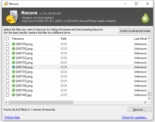 しかし、他の有料データ復旧ソフトと比べて、Recuvaのスキャン速度が割と遅く、見つけたファイルのファイル名も元のファイル名ではありません。また、検索を一旦止めてから再開できません。